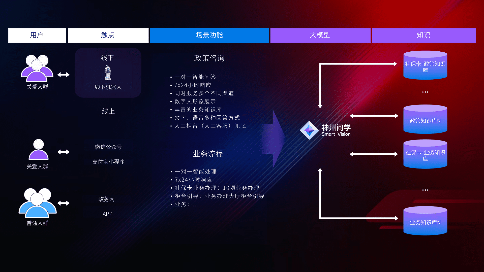 • 线上线下全覆盖:线上提供微信公众号、、支付宝小程序、、、、政务网、、、、app多种渠道,,,,与线下机器人形成完整服务体系。。。